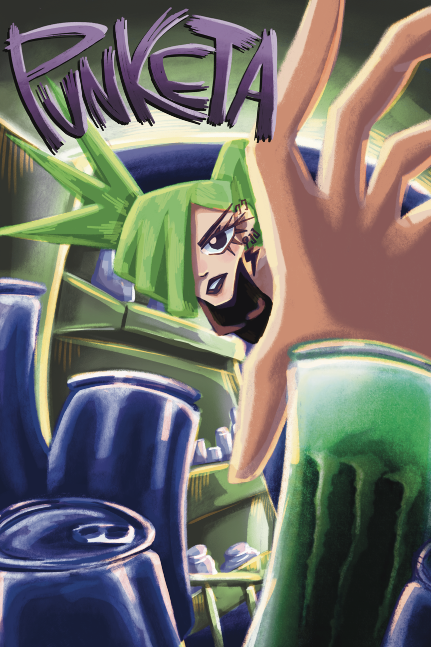 Al tomar una bebida energética, Punketa desata el caos al transformarse en una bestia verde en el escenario, obligándola a luchar a muerte contra un toro rojo gigante surgido de la multitud.